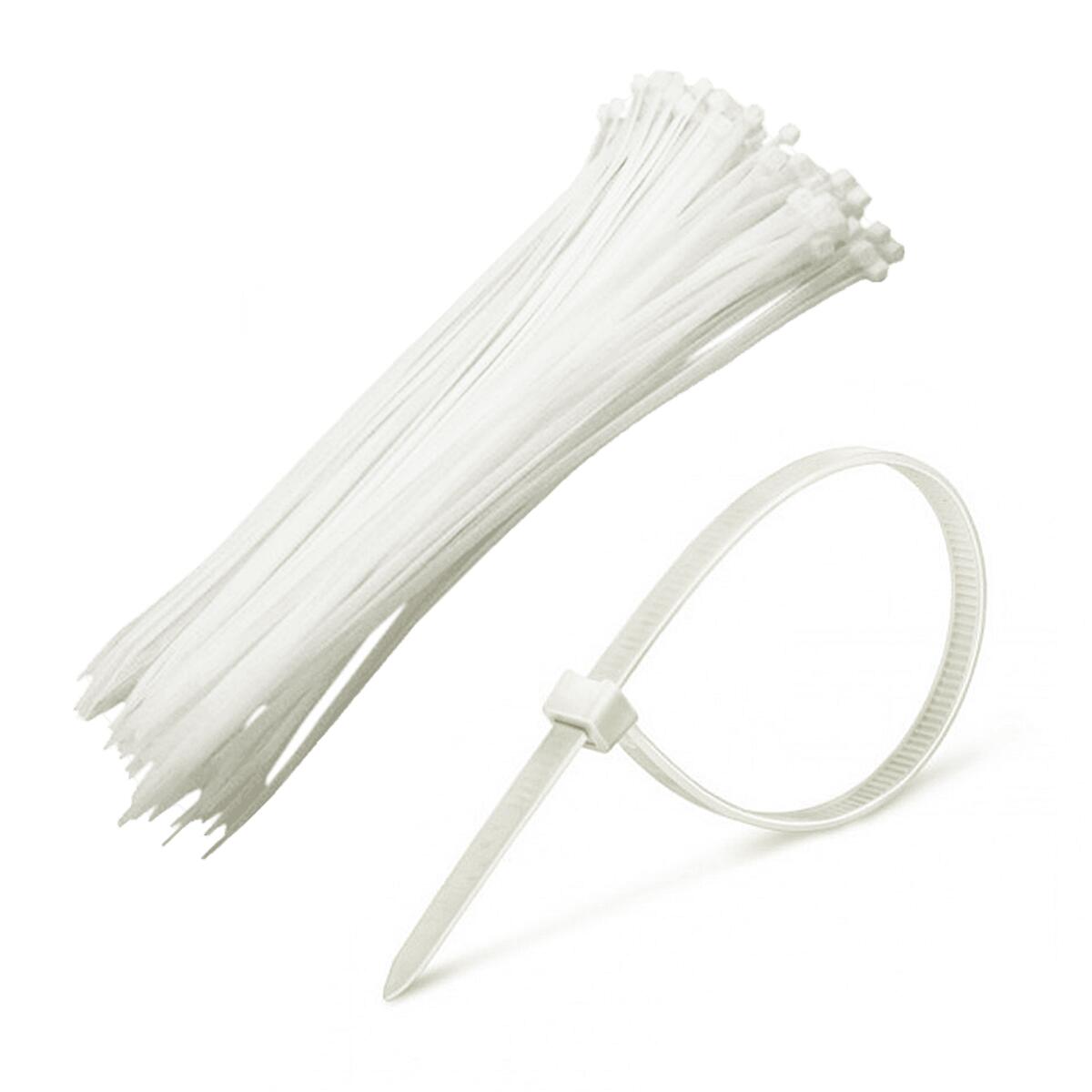 Abraçadeira de Nylon Branca com auto trava, conhecido como enforca gato, pacote contendo 100 unidades com largura de 2,5mm. O Enforca Gato é ideal para agrupar fios e cabos além de fixação diversas.