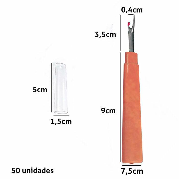 Feito com o cabo em plástico e o corpo de metal Caixa com 50 Unidades Mede 12,5cm com uma abertura de 4mm Ideal para uso em ateliês, costura profissional e artesanal