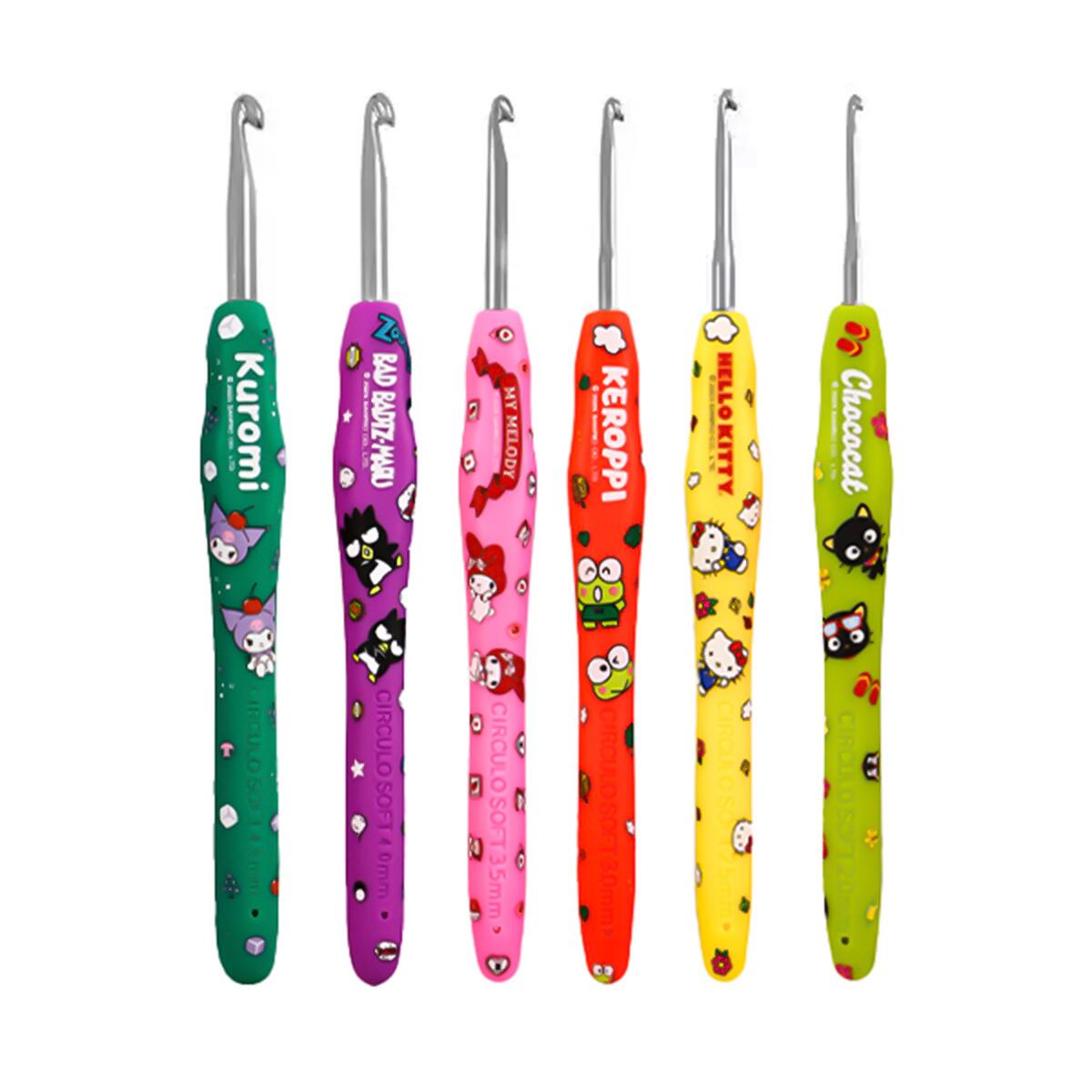 6 opções de cores e estampas exclusivas dos personagens da Sanrio Disponível nos tamanhos 2,0mm a 4,5mm Cabo emborrachado macio e resistente para maior conforto Proporciona excelente deslizamento do fio e precisão nos pontos Ideal tanto para iniciantes quanto para artesãos experientes Edição limitada