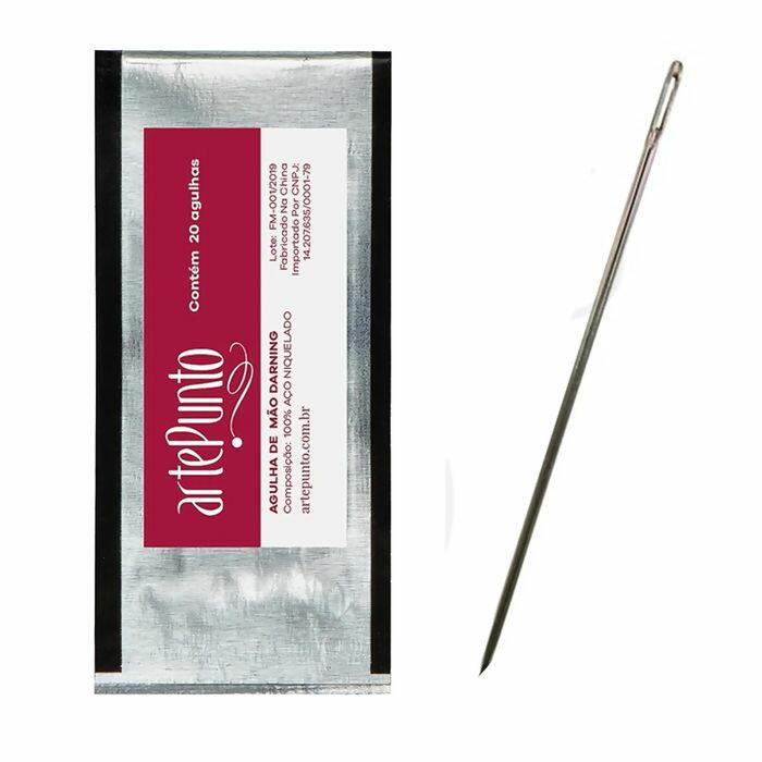 Agulha de mão marca Arte Punto feita de aço inoxidável, indicada para costura manual (bainhas, botões, etiquetas) e para aplicação de detalhes em peças prontas (customização).