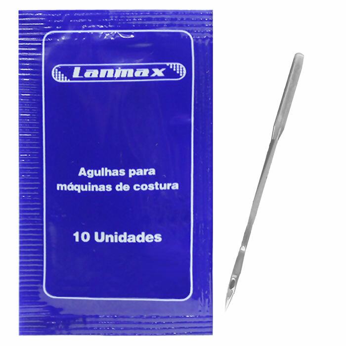 Agulhas de metal; Cada pacote contém 10 unidades; 3 tamanhos: 18, 19 e 20; Cada uma com 4,5 cm de comprimento; Garante acabamento de qualidade; Ideal para máquinas de transporte duplo, triplo e de braço;