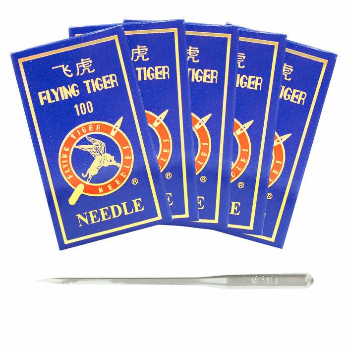 Agulha de Máquina Costura Industrial DCX27 SP439, 10 Pacotinhos com 10 Unidades cada totalizando 100 unidades, ideal para tecidos de malhas, tecidos elásticos e Overlock. Feita Totalmente de metal tem um tamanho total de 3,7cm