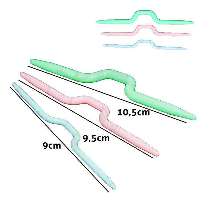 Agulha para tricô torta, também conhecida como agulha crooked, de trança ou knitting, é uma ferramenta indispensável para quem deseja confeccionar peças de tricô com tranças, torções e outros efeitos decorativos. Este prático conjunto inclui 3 agulhas de tamanhos diferentes, ideal tanto para tricoteiras iniciantes quanto para profissionais, é uma excelente adição ao kit de acessórios de tricô, facilitando a criação de peças elaboradas com acabamento perfeito.
