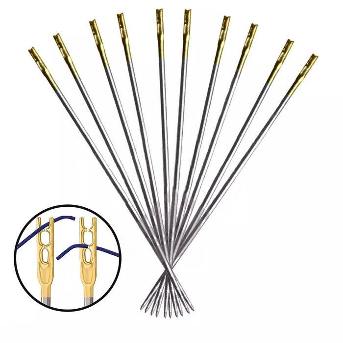 Agulha especialmente desenvolvida para pessoas com deficiência visual ou com dificuldades de enfiar linhas, esse kit contém 12 agulhas em tamanhos variados para diferentes tipos de costura manual. Cada agulha possui uma abertura especial na parte superior do buraco (olho), permitindo que o fio seja inserido com facilidade apenas pressionando-o sobre a ponta da agulha. Isso elimina a necessidade de precisão visual e torna o processo muito mais rápido e acessível. Ideal para costura doméstica, artesanato e pequenos reparos em tecidos.