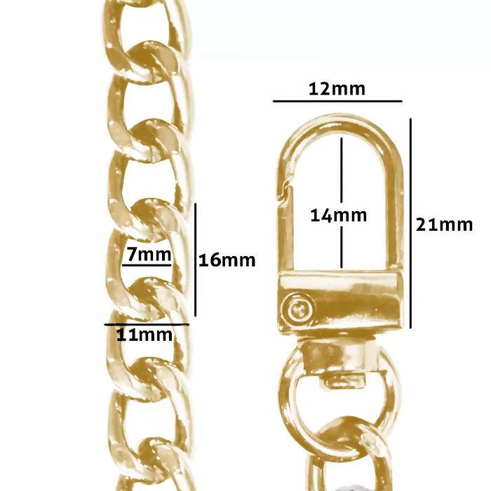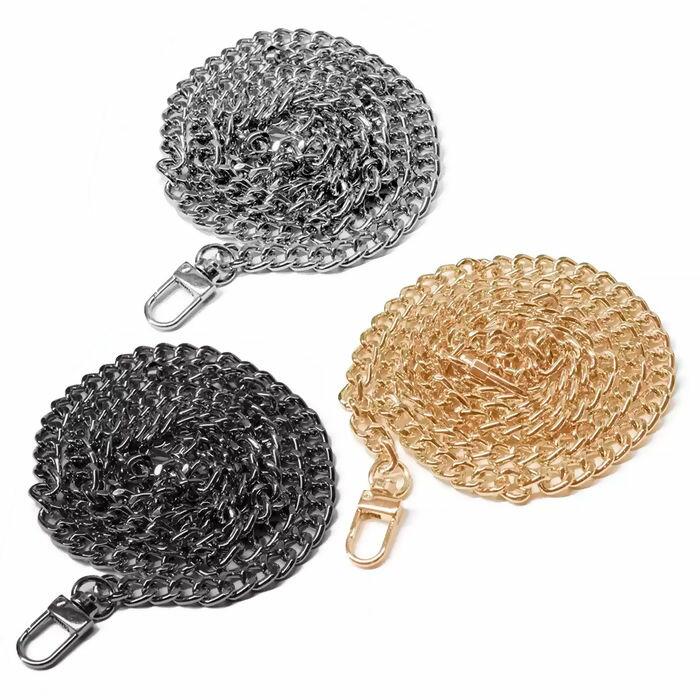 Alça para bolsa corrente de metal média, a corrente possui 11mm de largura e 120cm de comprimento. Garanta um acabamento sofisticado para as suas bolsas com a Alça de Metal Corrente. Disponível em duas cores, o acessório é ideal para peças modernas e cheias de charme!