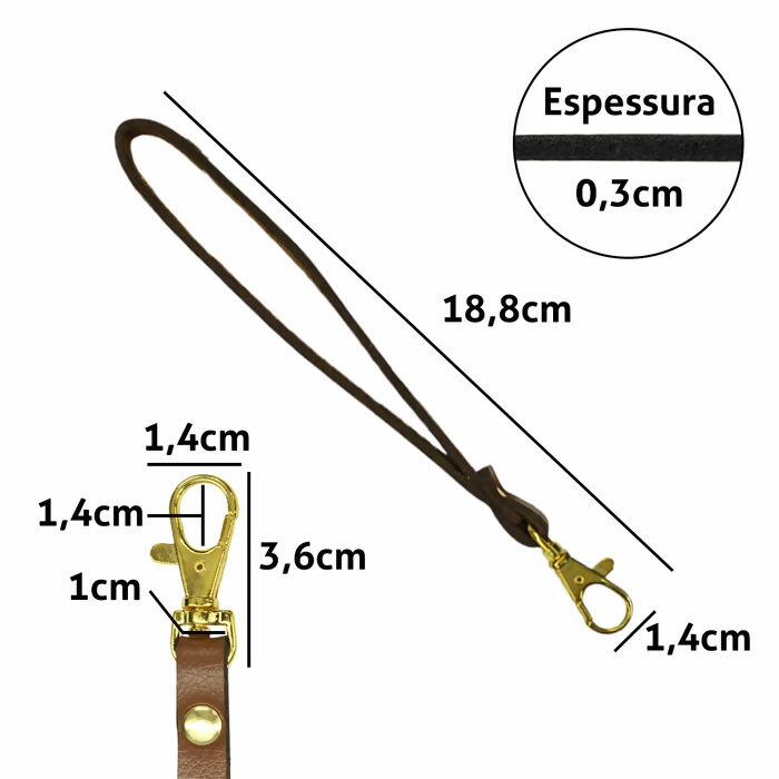 Observações Alça de Couro para Carteira Mosquetão Dourado BS006 - 019869