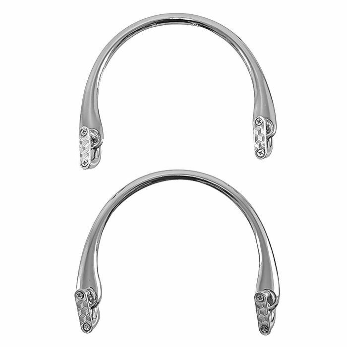Alça de Metal Meia Lua da marca Circulo, pacote com 2 unidades. Ideal para bolsas de mão, vai trazer sofisticação para seus designs. Feita de zinco com um tamanho de 10,5cmx11cm