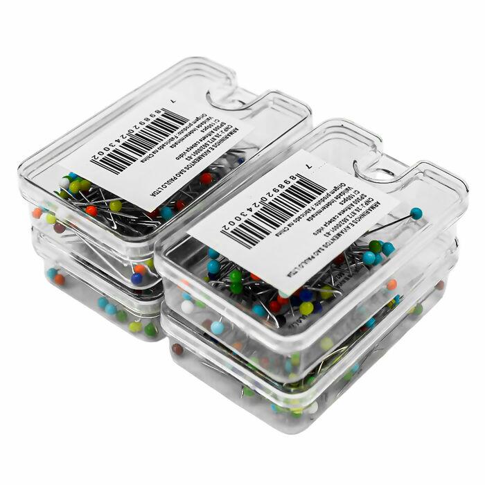 Alfinete feito de metal e a cabeça de Vidro 12 caixinhas contendo 100 alfinetes cada Totalizando 1200 Alfinetes Alfinete medindo 33mm Cores das cabeças dos alfinetes são sortidas