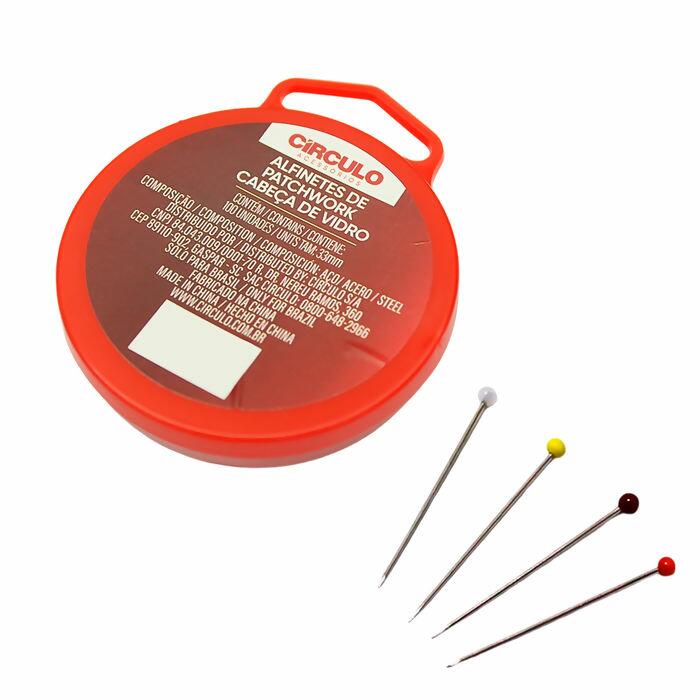 Os Alfinetes de Patchwork com Cabeça de Vidro Círculo 33mm são indispensáveis para a marcação de costuras em geral, proporcionando praticidade ao passar e costurar tecidos. Com cabeças coloridas e divertidas, eles facilitam a localização, evitando que alfinetes sejam esquecidos no trabalho. Além de serem perfeitos para patchwork, também são úteis para fixar papéis em quadros e marcar mapas. Fabricados em aço e plástico, esses alfinetes garantem durabilidade, precisão e segurança, prevenindo cortes e costuras em lugares errados.