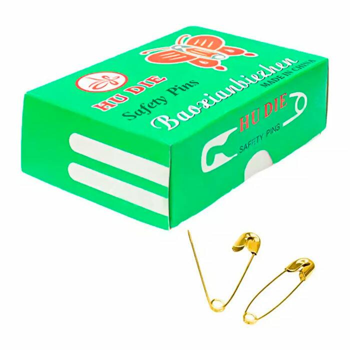 Alfinete de Segurança Dourado SP309, caixa com 1700 unidades. É muito utilizado para juntar tecidos e marcar pontos para a costura. Com seu formato oval, auxilia muito bem na hora de segurar os tecidos. Alfinetes nos tamanhos medindo 000 (18mm) e 00 (22mm), feito 100% de Aço Niquelado