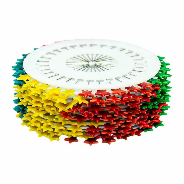 Alfinete Estrela Colorida SP420 distribuídos em 12 discos contendo 30 alfinetes em cada totalizando 360 Alfinetes. Utilizado para marcar e prender tecidos a serem cortados e costurados. Alfinete medindo 5,5cm feito de metal resistente e o disco medindo 11cm em plástico