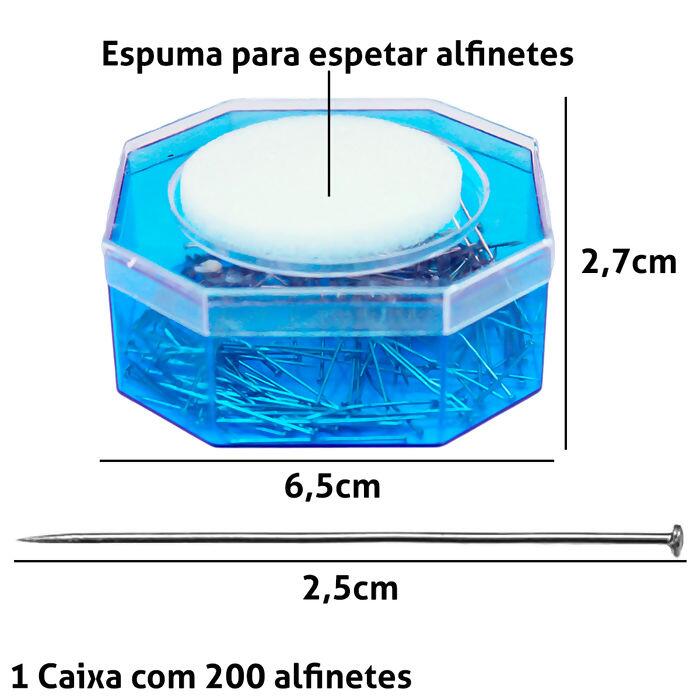 A caixa de alfinetes de costura ALF-16011 contém 200 unidades de 2,5 cm, ideal para facilitar trabalhos de costura e artesanato. Feitos de Aço Niquelado resistente, os alfinetes vêm armazenados em uma caixa plástica, que inclui uma prática espuma colada à tampa. Essa espuma permite manter os alfinetes organizados durante o uso, reduzindo o risco de perda.
