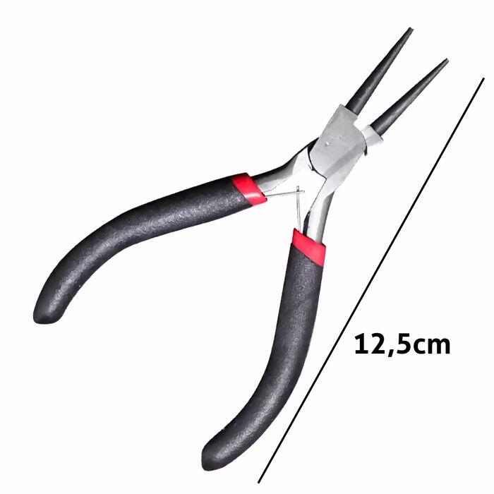 Bico fino; Contém 1 unidade; 12,5 cm de comprimento; Para bijuterias, artesanato e pequenos reparos.