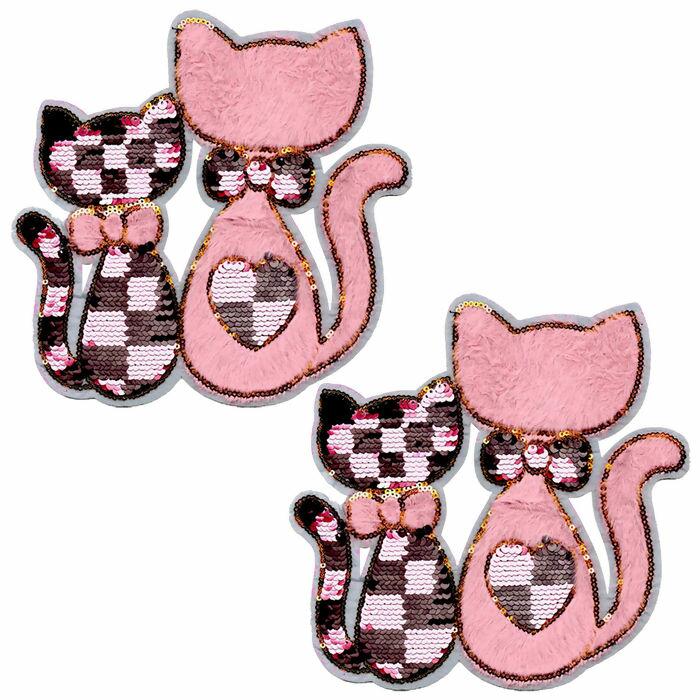 Aplique Costurável Gato Xadres Rosa SP395, 20 Unidades. Perfeita para decorações de artesanatos e customização de panos e roupas, dando uma aparência delicada à peça! Feita com lantejoulas, pelagem artificial e poliéster com um tamanho de 20cmx20cm