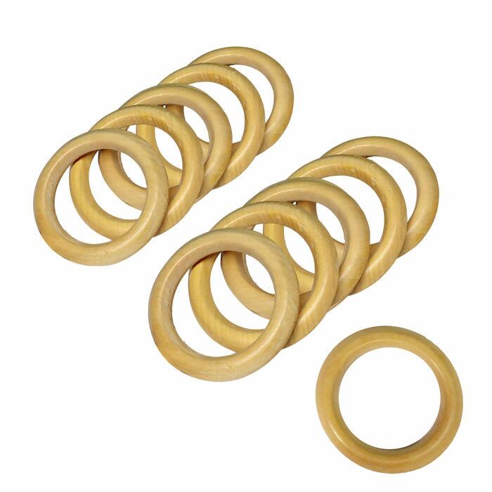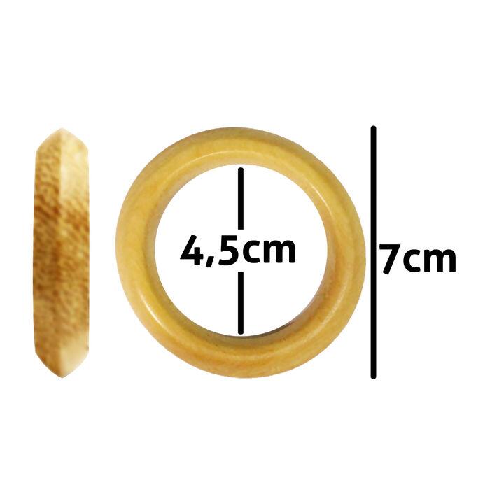 Pacote com 25 argolas de madeira com 4,5cm de diâmetro interno Produzidas em madeira natural, com acabamento liso e resistente Ideais para cortinas, patchwork, crochê e tricô Leves, duráveis e fáceis de manusear