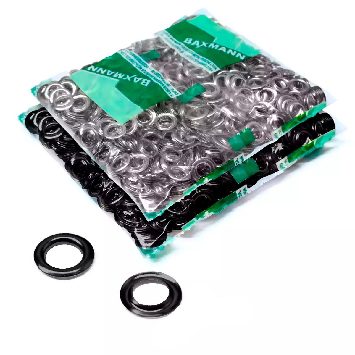 Arruela número 50 Baxmann feito totalmente de ferro com acabamento em latão, cada pacote contém cerca de 1000 unidades da arruela. A Arruela de metal é indicado para diversas aplicações junto ao ilhós, como por exemplo para abrir um caminho para passagem de cordões, criar ventilação na peça ou para decoração da peça! Também é utilizado em gráficas na produção de rifas e lonas.