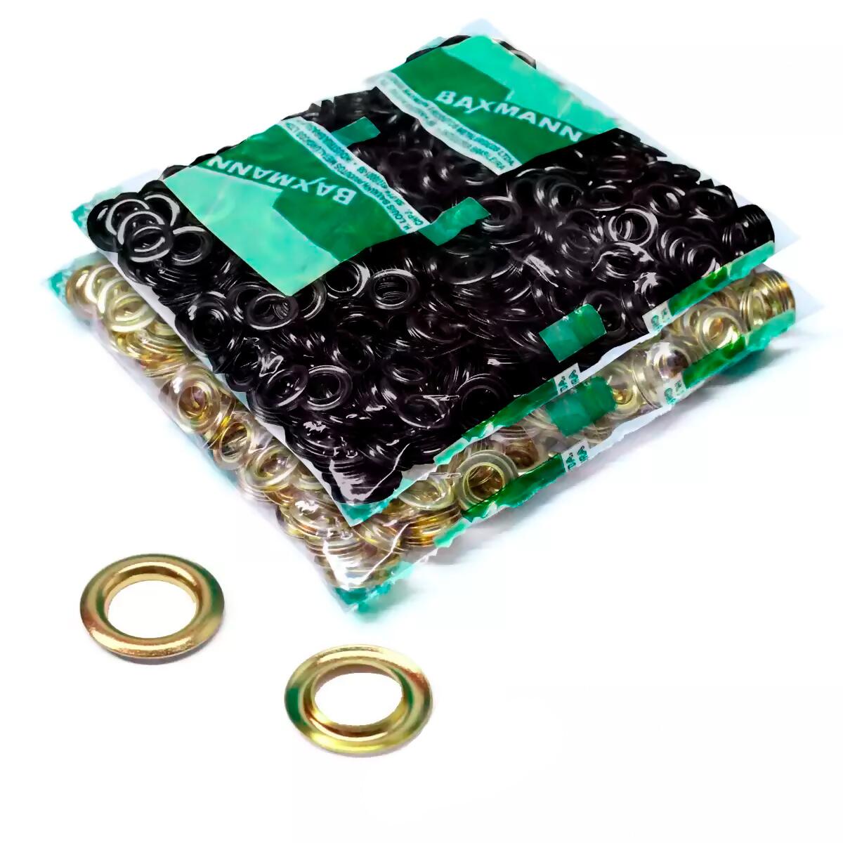 Arruela número 51 Baxmann feito totalmente de ferro com acabamento em latão, cada pacote contém cerca de 1000 unidades da arruela. A Arruela de metal é indicado para diversas aplicações junto ao ilhós, como por exemplo para abrir um caminho para passagem de cordões, criar ventilação na peça ou para decoração da peça! Também é utilizado em gráficas na produção de rifas e lonas.