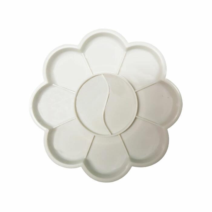 Bandeja Godê paleta de plástico para pintura em formato de flor contendo 10 espaços divididos para armazenar tinta e água. Feito de um plástico resistente, é um material que se bem usado pode durar muito tempo. O Godê Cássia não tem contra indicações em relação a tintas ou a solventes. Ele aceita qualquer tipo de tinta, solvente ou água.