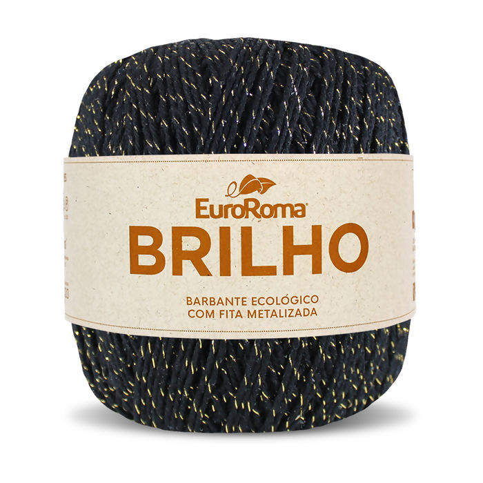 O Fio Brilho Ouro marca Euroroma, novelo 4/6 contendo cerca de 406 metros de fio com TEX 984. O EuroRoma Brilho que é sucesso entre os artesãos, traz em sua composição uma fita metalizada na cor prata ou dourado, que garante um toque único no artesanato