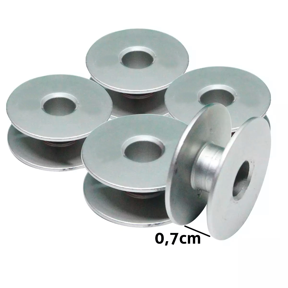 Feita de aluminio Pacotinho com 5 unidades Bobina baixa com um tamanho de 0,7cm Ideal para as mais variadas máquinas industriais
