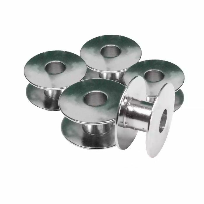 Bobina baixa lisa para máquinas de costura, feita de metal, essa bobina é ideal para as mais variadas máquinas industriais. Cada pacote contém 5 unidades