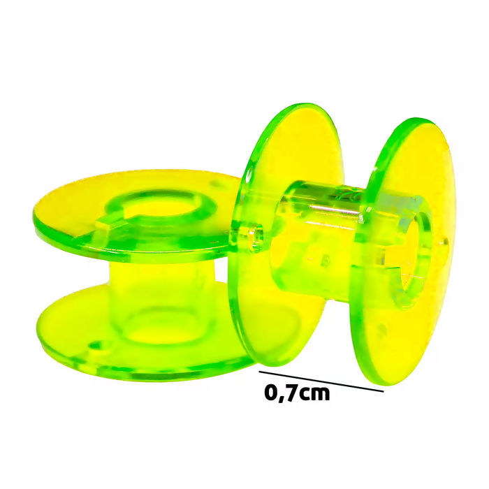 Bobina baixa para máquinas de costura, feita de plástico cristalino Colorido, essa bobina é ideal para as mais variadas máquinas. Cada pacote contém 10 unidades