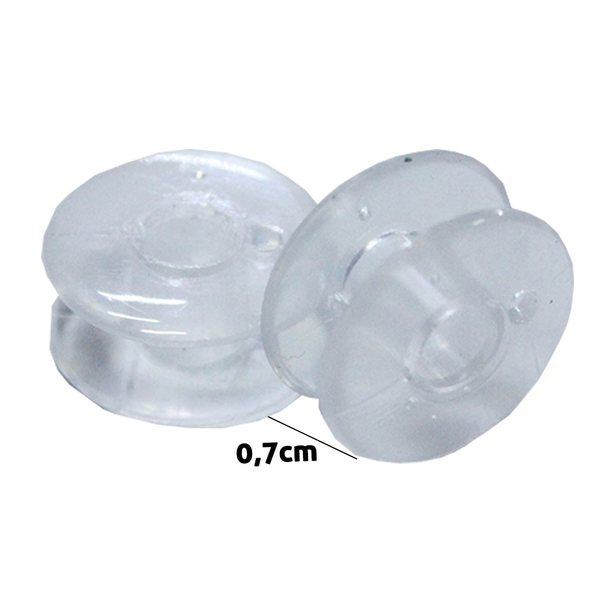 Feita em plástico cristalino transparente Compatível com diversas máquinas de costura domésticas Ideal para manter a organização Embalagem com 10 unidades