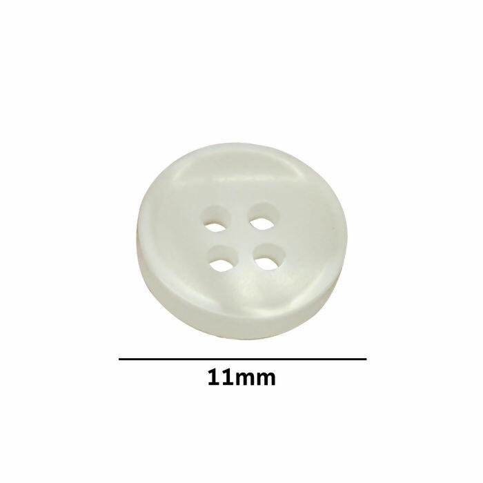 Botão Branco Perolado 101 com 4 furos 11mm, pacote contendo 50 botões .Feito de Poliéster, esse botão é ideal para roupas como blazer, sobretudo, jalecos entre outras peças semelhantes, pode também ser utilizada em artesanato de forma geral.