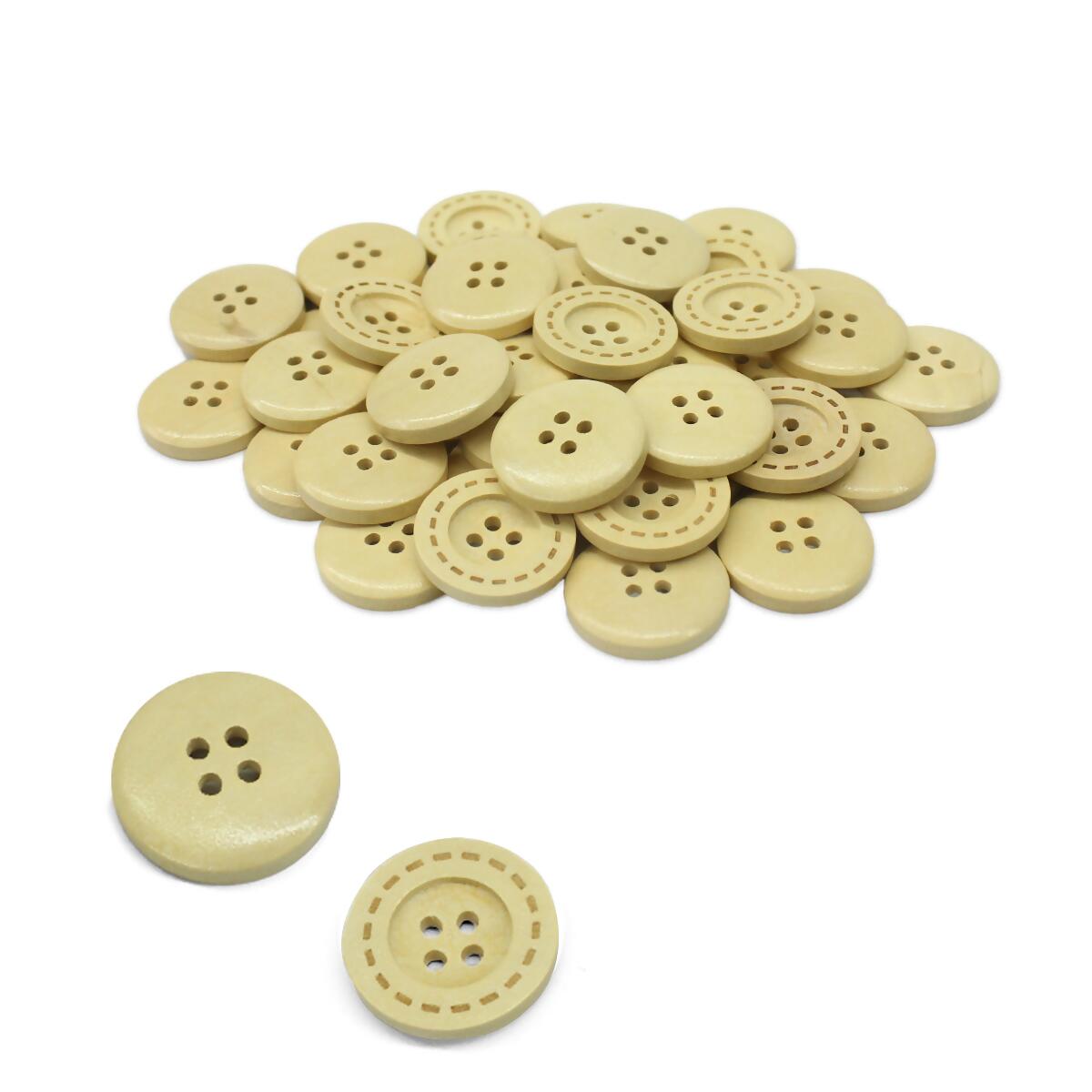 Botão com 4 furos BM005, modelo clássico e resistente, feito em Madeira, é ideal para costuras variadas. O pacote possui 200 botões de 25mm, ideal para roupas como blazer, sobretudo, jalecos entre outras peças semelhantes, garantindo ótima durabilidade e fixação em peças de moda, artesanato e decoração.