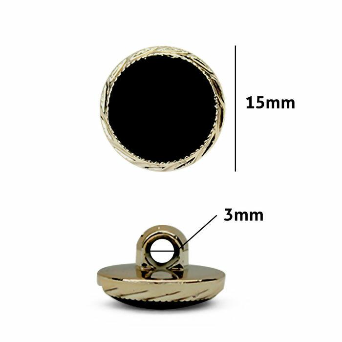 Dados Técnicos Botão com Pé Dourado Preto BM945 ABS 15mm 500un - 021937