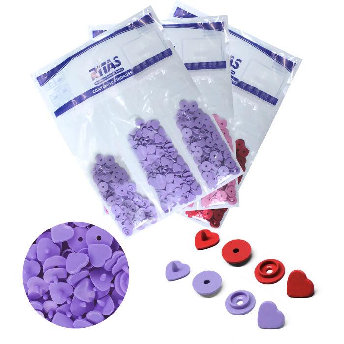 Caixa de botão de pressão marca Ritas tamanho 10 em formato de coração com 50 unidades de uma única cor, cada botão possui cerca de 10mm. Os botões de pressão plásticos possuem cores vívidas que dão a suas peças um toque especial, com muito estilo e ótima qualidade elevando o valor de sua criação. Indicado para peças como roupas para bebês, carteiras, bolsas e muito mais!