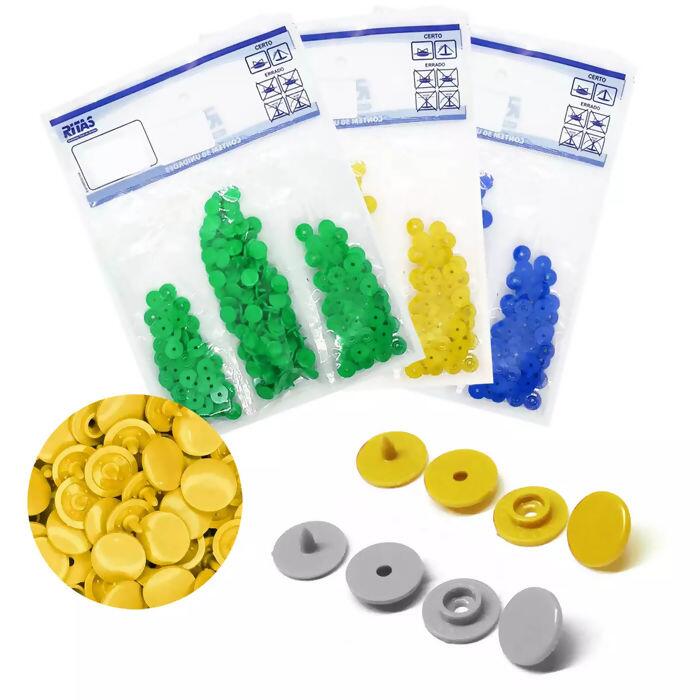 Caixa de botão de pressão marca Ritas tamanho 10 com 50 unidades de uma única cor, cada botão possui cerca de 10mm. Os botões de pressão plásticos possuem cores vívidas que dão a suas peças um toque especial, com muito estilo e ótima qualidade elevando o valor de sua criação. Indicado para peças como roupas para bebês, carteiras, bolsas e muito mais!