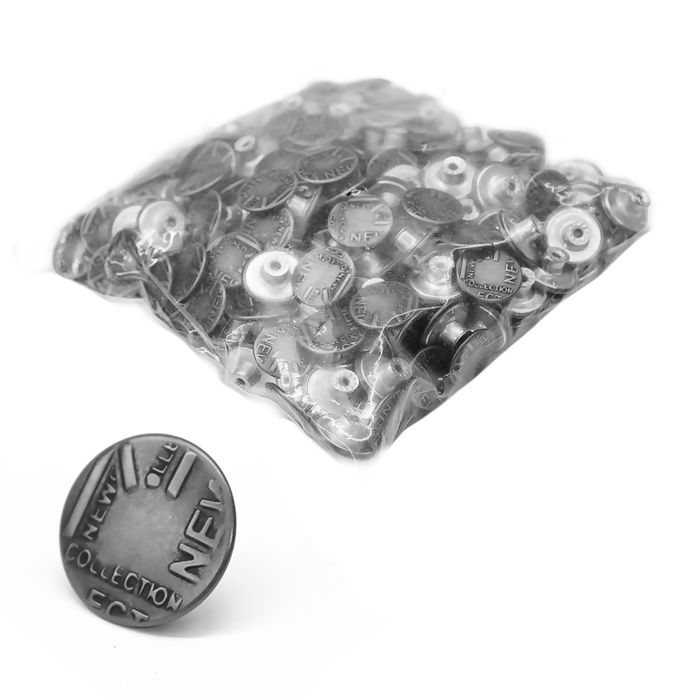 Botão flex LEB08, feito totalmente de ferro. Botão flexível ideal para produção e confecção de calças e roupas jeans em geral. Cada pacote contém cerca de 250 unidades