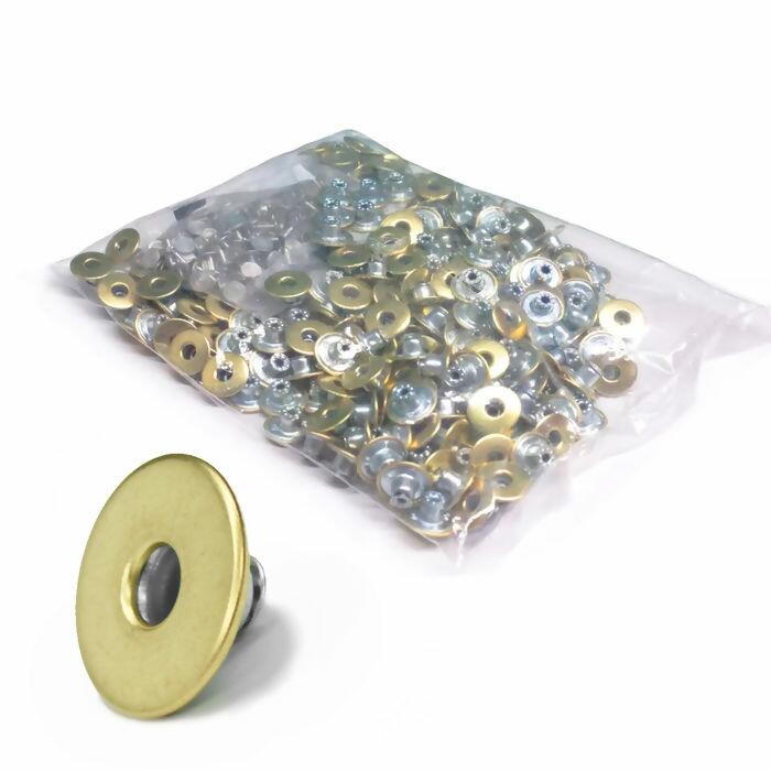 Botão Flex Vazado LEB10 Dourado, fabricado totalmente em ferro, garantindo excelente resistência e durabilidade. Este botão é do tipo flexível, sendo especialmente indicado para a produção e confecção de calças, roupas jeans e outras peças que exigem firmeza e acabamento profissional. Ideal para uso em ateliês, confecções e fábricas de vestuário, sua aplicação proporciona um visual moderno e funcional às peças. Cada pacote contém 250 unidades de botões de 20mm, e 250 unidades de pinos. Para aplicação correta, é necessário o uso de uma matriz, além de ferramentas como balancim ou prensa, que garantem o encaixe perfeito e seguro do botão no tecido.
