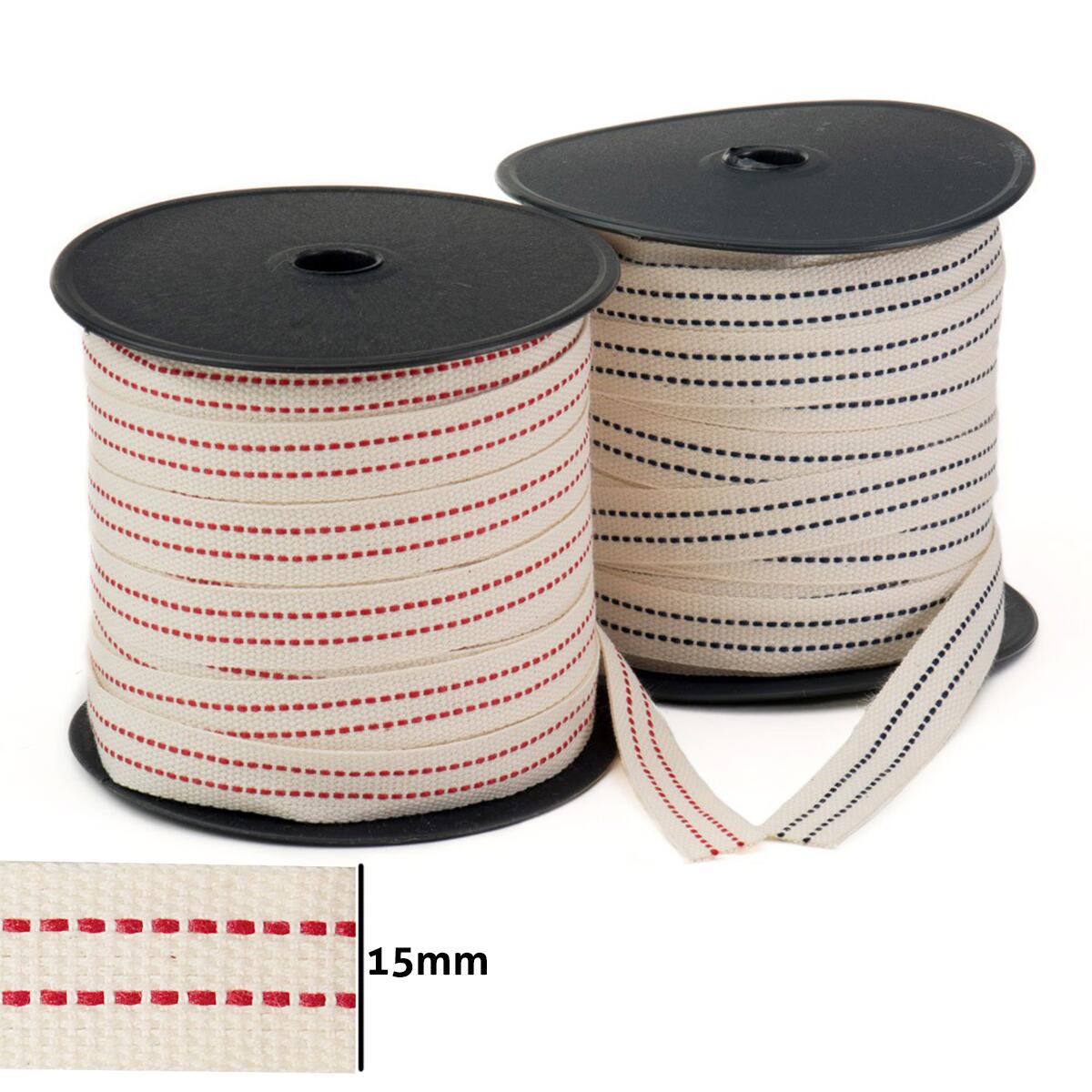 Cadarço Sarjado 3515 marca São José, rolo contendo cerca de 50 metros de cadarço com 15mm de largura. O Cadarço Pontilhado São José é indicado para acabamentos em cadernos, amarrilhos de embalagens e decoração de roupas e artesanato em geral.