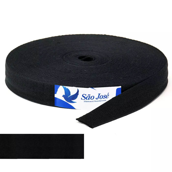 Cadarço de Algodão Sarjado 3325 marca São José, cada rolo contém cerca de 25 metros de cadarço com largura 25mm. O Cadarço Sarjado São José é indicado para diversas aplicações como confecções, reforço de costura, sacolas, bolsas, mochilas, sapatos.