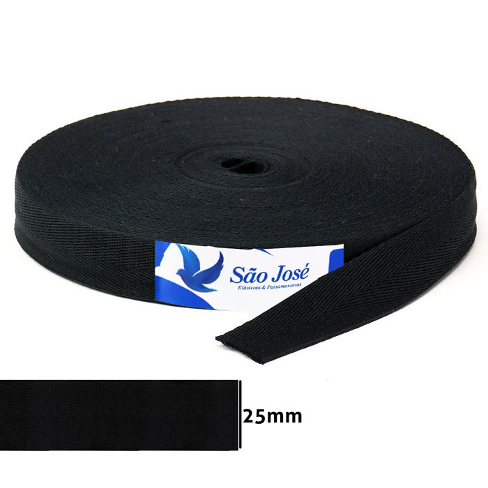 Descrição Cadarço Alça Sarjado Chato 3325 Algodão São José Preto 25mm 25m - 000024