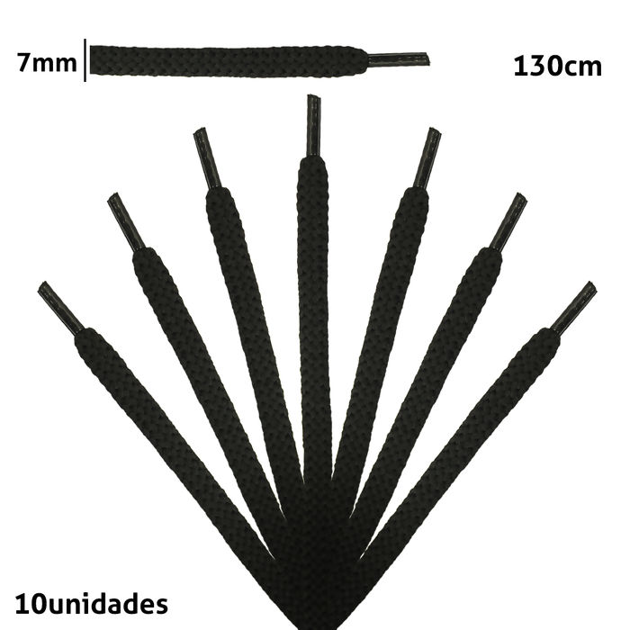 Pacote com 10 unidades Contém 130 cm de comprimento Cadarço com 7 mm de espessura Versão Luxo possui maior conforto e durabilidade Ideal para roupas, calçados e artesanato em geral