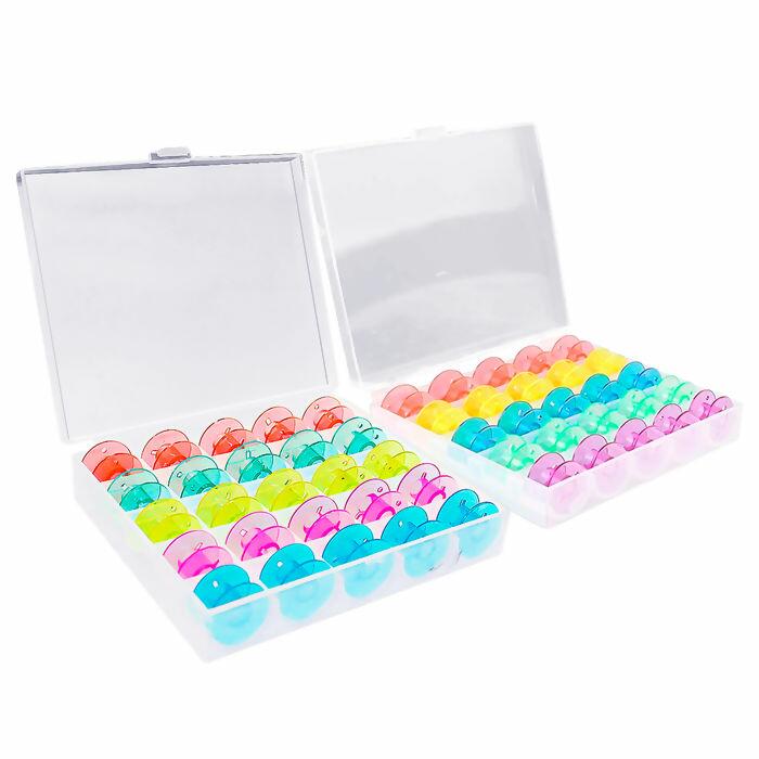 Caixa Organizadora com 25 Bobinas Altas SP316. kit com 5 caixas com 25 bobinas cada, totalizando 125 bobinas. Sendo 125 bobinas já inclusas divididas igualmente em 5 cores, Ideal para organizar suas bobinas, Sendo feita totalmente de plástico com um tamanho de 10cmx12cm
