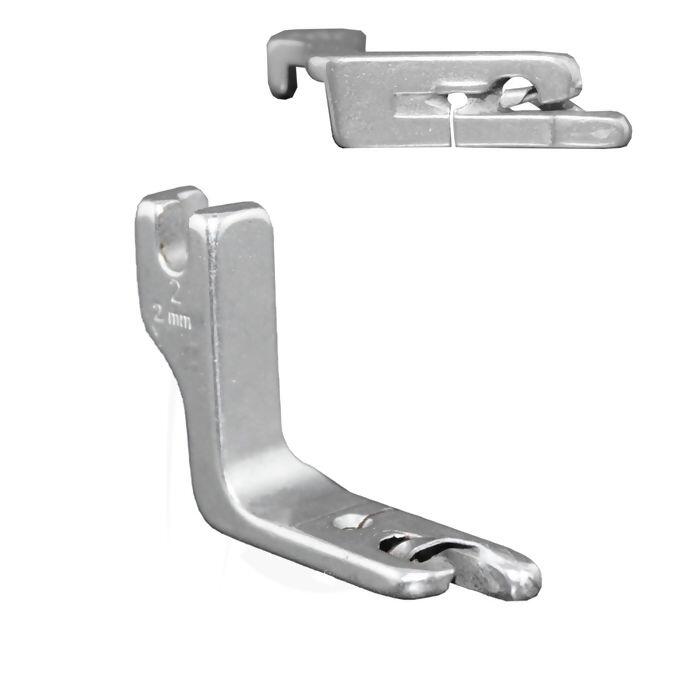 Sapata para barra/bainha estreita de tamanho 2mm ou 5/64", produzido totalmente em metal resistente. Este modelo é indicado para máquinas de costura retas industriais, oferecendo excelente desempenho em processos de costura profissional. Faça barras delicadas com acabamento de alta qualidade facilmente.