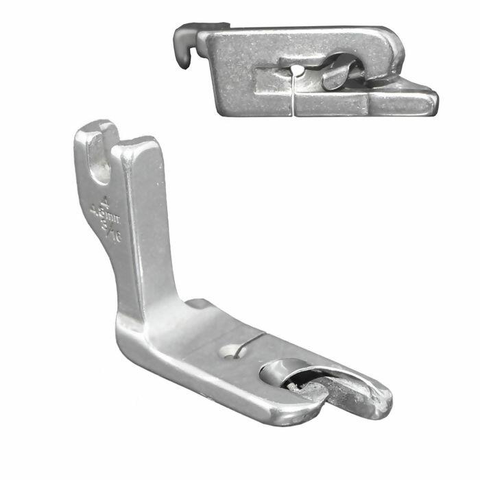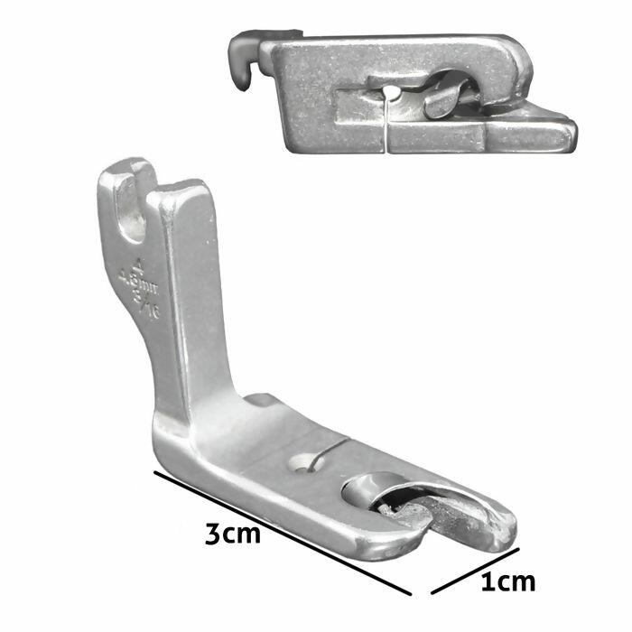 Sapata para barra/bainha estreita de tamanho 4,8mm ou 3/16", produzido totalmente em metal resistente. Este modelo é indicado para máquinas de costura retas industriais, oferecendo excelente desempenho em processos de costura profissional. Faça barras delicadas com acabamento de alta qualidade facilmente.