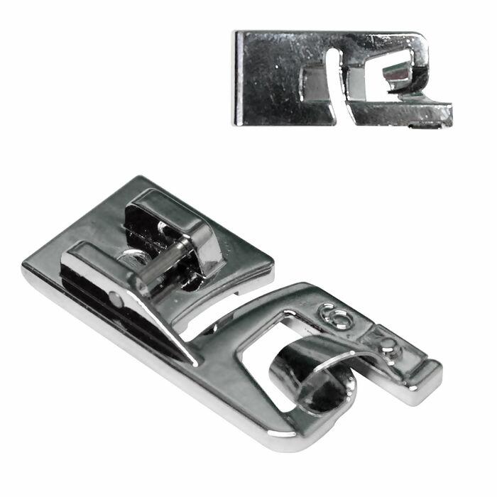 Sapata para barra/bainha estreita de tamanho 6mm, produzido totalmente em metal resistente. Este modelo é indicado para máquinas de costura domésticas, oferecendo excelente desempenho em processos de costura, do simples ao profissional. Faça barras estreitas com acabamento delicado de alta qualidade facilmente. Necessário haste para troca de calcador.