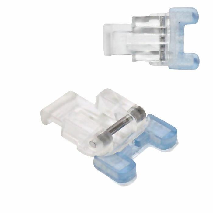 Sapata para pregar botão sem haste com ponta de borracha, desenvolvida especialmente para máquinas de costura domésticas. Confeccionada inteiramente em plástico resistente, essa sapata proporciona maior controle e segurança na aplicação de botões, graças à ponta de borracha que evita o deslizamento e protege o tecido durante a costura. É ideal para pregar botões com precisão e firmeza, garantindo um acabamento limpo e profissional em peças de vestuário, artesanato e consertos em geral.