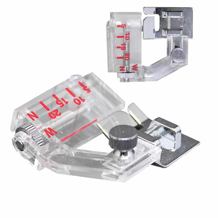 Regulagem para a posição da agulha e a largura do viés Fabricada em metal e acrílico Ideal para aplicar viés com precisão CCompatível com máquinas de costura domésticas