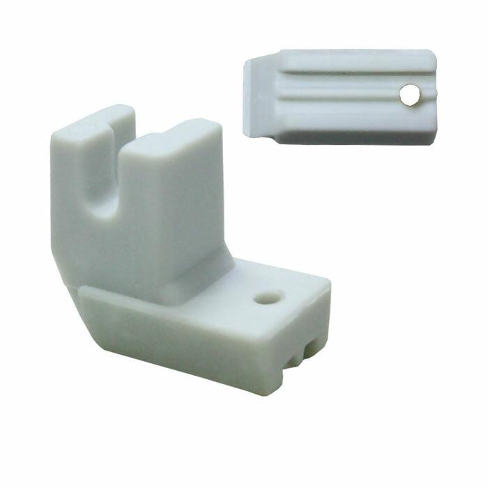 Calcador para zíper invisível, produzido inteiramente em plástico teflon de alta qualidade, ideal para proporcionar um deslizamento suave sobre tecidos delicados. Desenvolvido especificamente para máquinas de costura retas domésticas, é perfeito para aplicações que exigem acabamento limpo e discreto, como em vestidos, saias e peças de alfaiataria.