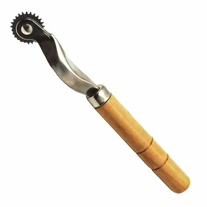 Carretilha para Marcar Tecido, 1 Unidade, ideal para criar linhas pontilhadas no tecido sem sujá-lo, Cabo feito em madeira e o corpo em metal, com um tamanho de 2cmx15cm