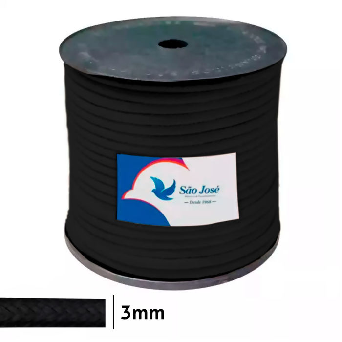 Marca São José, reconhecida pela qualidade e versatilidade Cordão roliço 3045 Com Alma marca São José cor preto Rolo com aproximadamente 50 metros de comprimento Espessura de 3 mm, ideal para acabamentos e alças Indicado para decoração de fantasias e artesanato em geral
