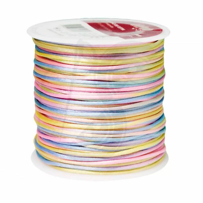 Rabo de Rato Cordão Multicolorido em cores claras Cetinado marca Arte Punto, cada rolo contém 50 metros de cordão de 1mm de largura. O Cordão Acetinado Rabo de Rato é indicado para decoração de chinelos, calçados, crachás, semi-joias, lembrancinhas e artesanato em geral.