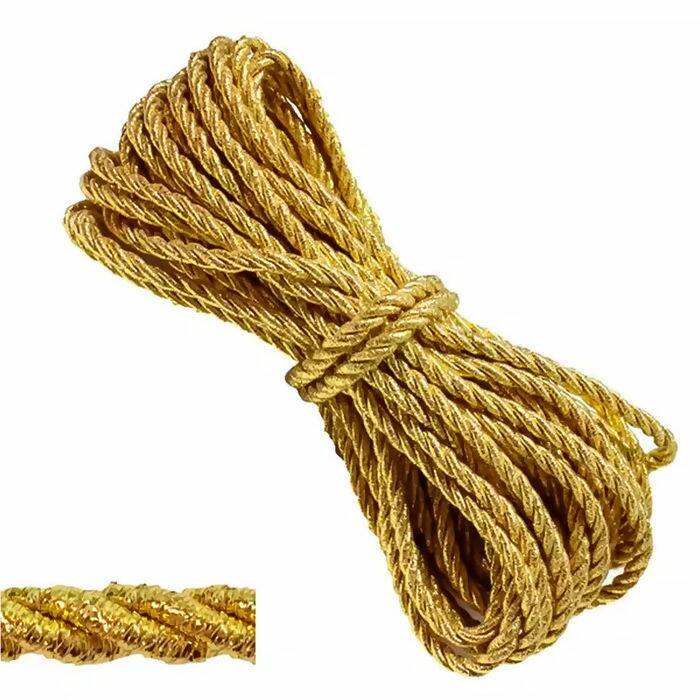 Cordão Metalizado Ref.002/15 São Francisco dourado, cada pacote contém cerca de 10 metros de cordão com 6mm de espessura. O Cordão São Francisco é ideal para confeccionar e decorar fantasias e artesanato em geral.