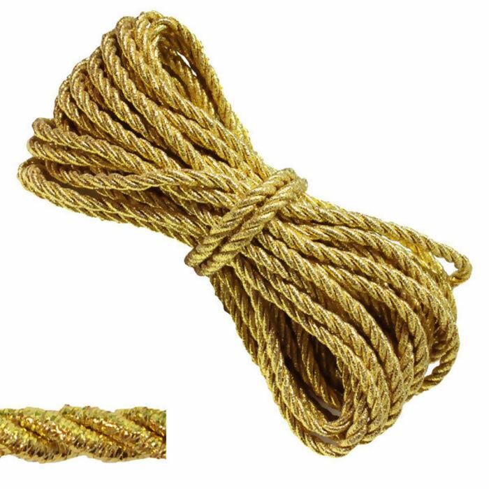Cordão Metalizado Ref.003/20 São Francisco dourado, cada pacote contém cerca de 10 metros de cordão com 7mm de espessura. O Cordão São Francisco é ideal para confeccionar e decorar fantasias e artesanato em geral.